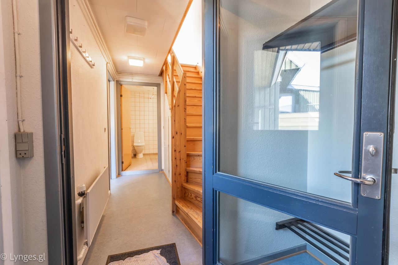 Velkommen til dette rummelige og velindrettede rækkehus i to plan, ideelt beliggende i et roligt og børnevenligt kvarter tæt på natur, legepladser og offentlig transport. Her får du en sjælden mulighed for at skabe dit drømmehjem – til en meget attraktiv pris i forhold til størrelse og markedssituation i Nuuk.