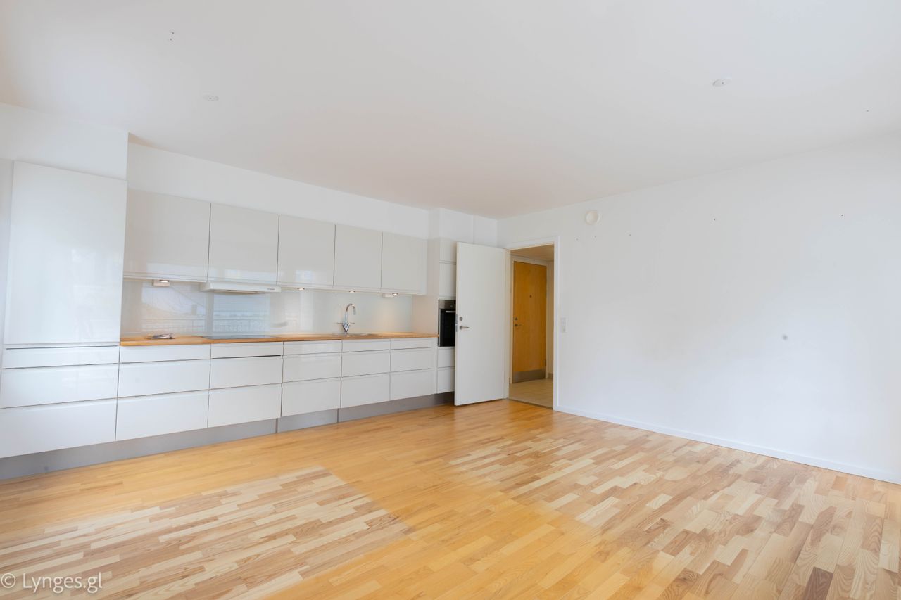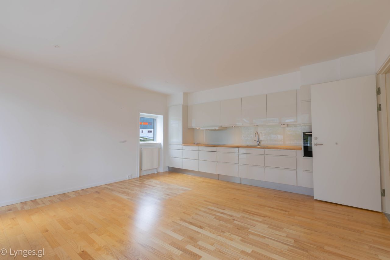 Meget velholdt 2 rums ejerlejlighed for enden af in lukket vej. Altan med udsigt over Store Malene og bugten ved Qinngorput. Dejligt lysindfald i lejligheden. Flotte Junkers parketgulve i hele lejligheden. Aflåst indgangsparti med dørtelefon og egen depotrum. Elevator. Fælles parkering.