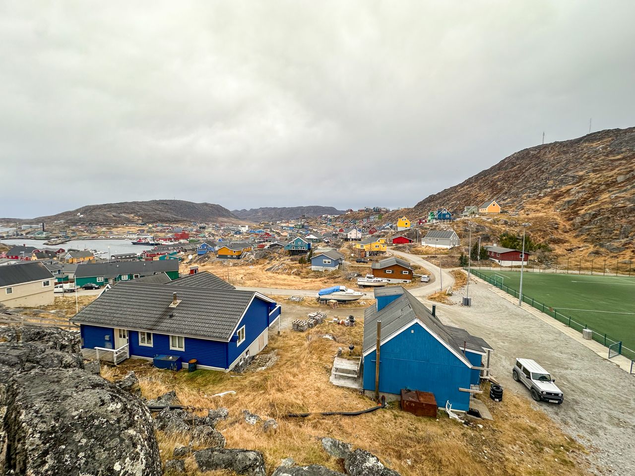 Fra både stue og terrasse får du en fantastisk udsigt over Qaqortoq, havneområdet og havet. Her kan du følge livet i byen, sejlladsen på fjorden og skiftende vejr, der gør udsigten til et levende maleri.