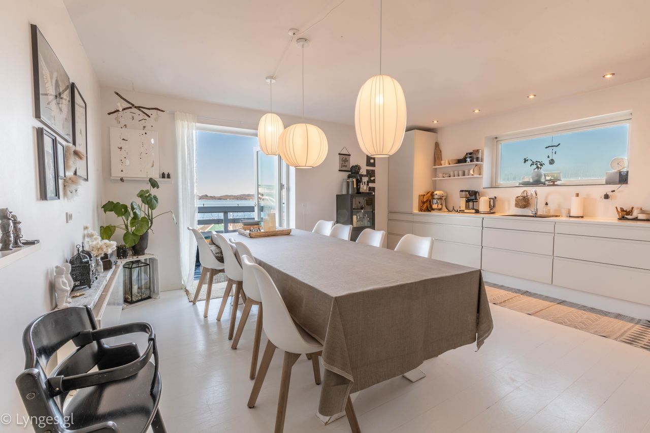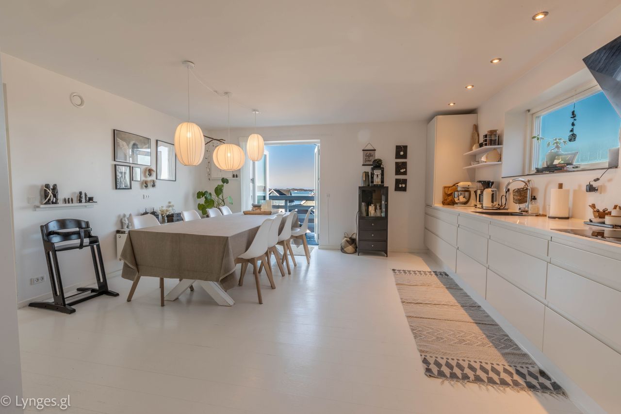 Stueplan: Indbydende entré. Meget rummeligt og lyst spisekøkken med hvide elementer og udgang til terrasse. Skønt badeværelse med ligeledes flot klinkegulv og bruseniche. Dejlig stue der har delvis åben forbindelse til spisekøkkenet, og herfra også udgang til den store terrasse med udsigt til fjorden. Dejlig stort soveværelse med god skabsplads. Fra stue er der trappe op til 1. sal samt til kælder/vaskerum.