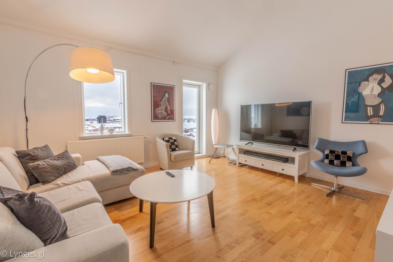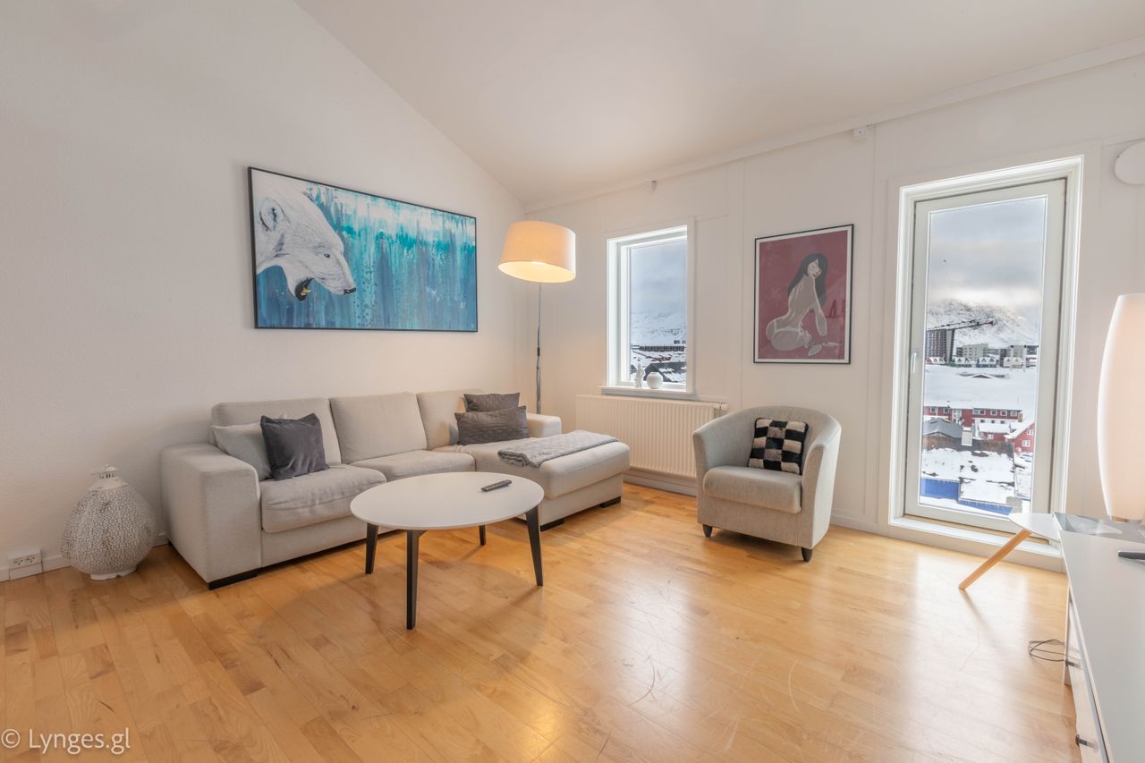 Prisen er sat rigtig skarpt! Boliger med 4 soveværelser hænger ikke på træerne. Her får du et rækkehus med eget indgang, rigtig god udsigt mod sydøst, hvor de store fjelde Ukkusissaq og Kingittorsuaq står majestætisk.
