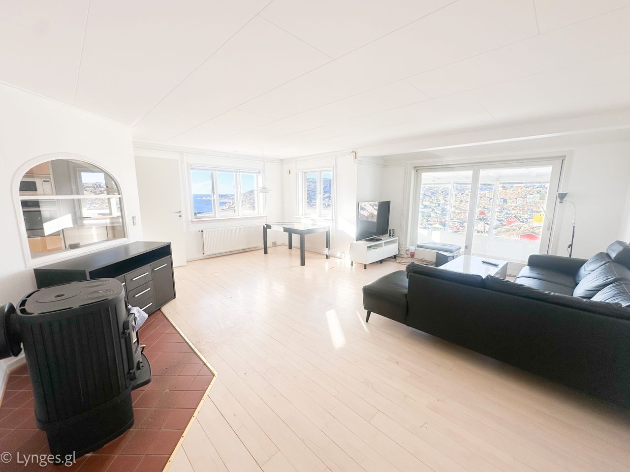 Dette hus ligger højt i terrænet med en betagende udsigt over både Qaqortoq by og fjorden. Her får du en sjælden mulighed for at realisere dine egne boligdrømme eller skabe en ejendom med flere muligheder.
