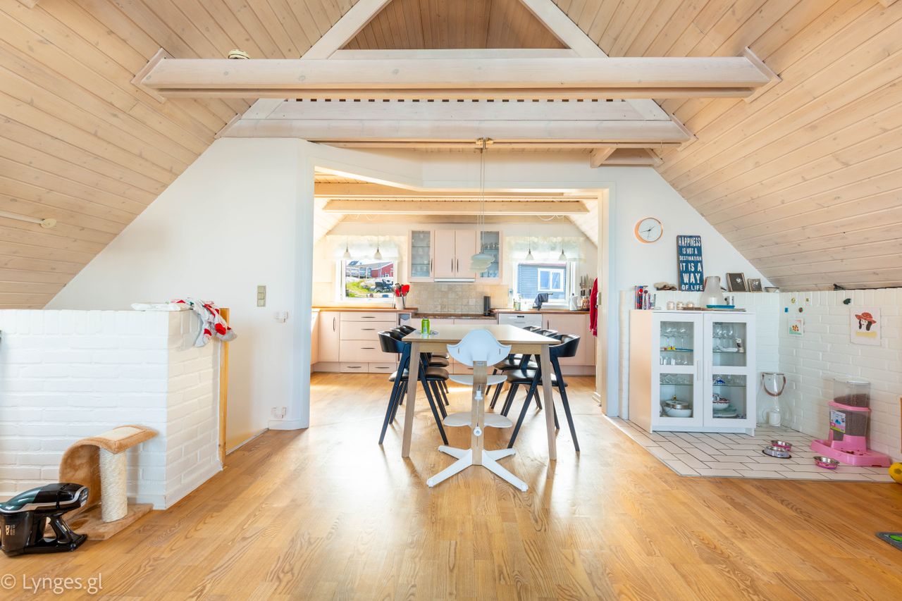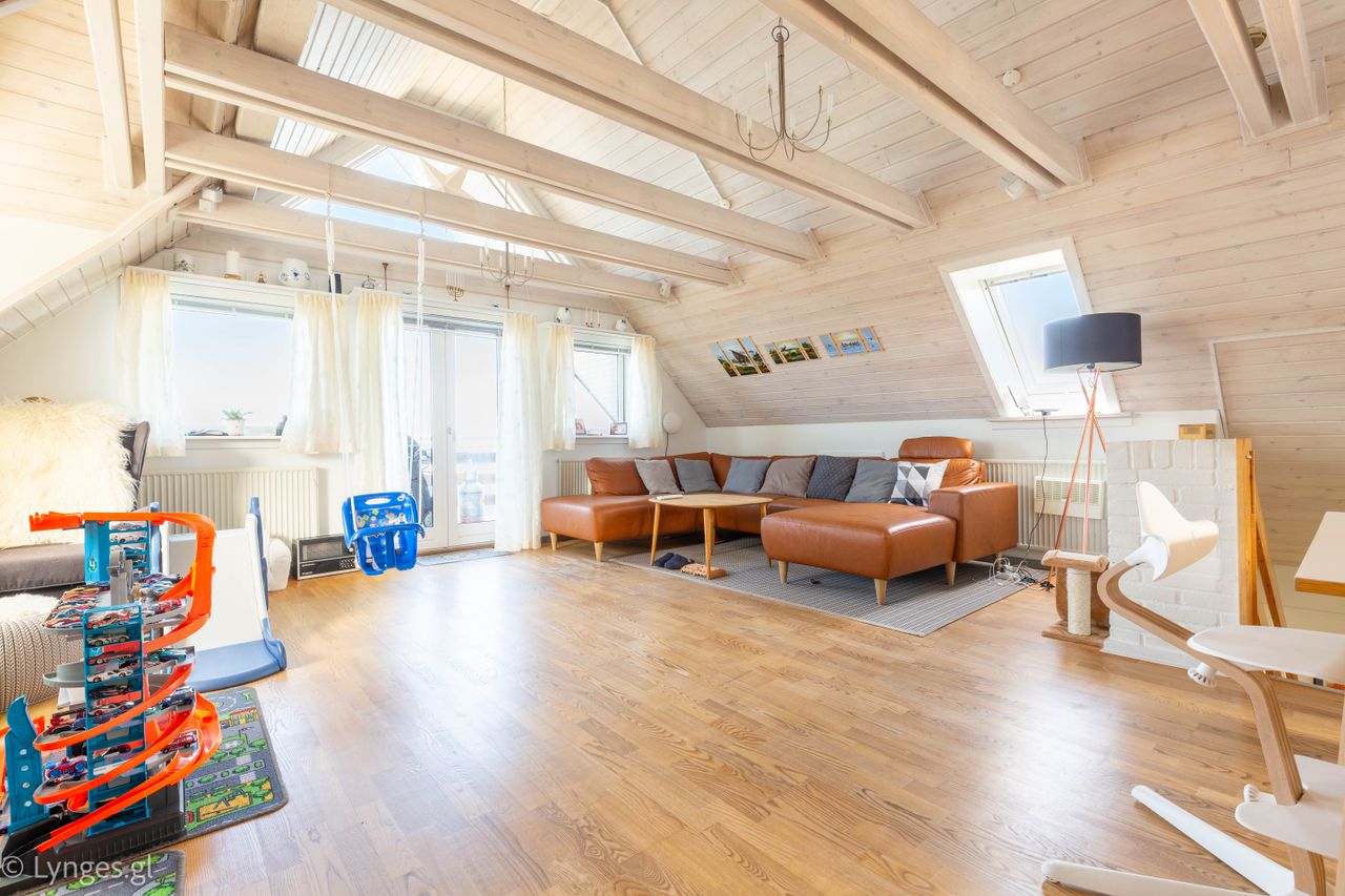 På en af Ilulissats mest attraktive adresser udbydes dette charmerende bjælkehus med uforstyrret panoramaudsigt til Diskobugten. Ejendommen ligger i første række til vandet, hvor isfjelde og havudsigt er en naturlig del af hverdagen. Placeringen kombinerer ro, natur og nærhed til byens faciliteter.